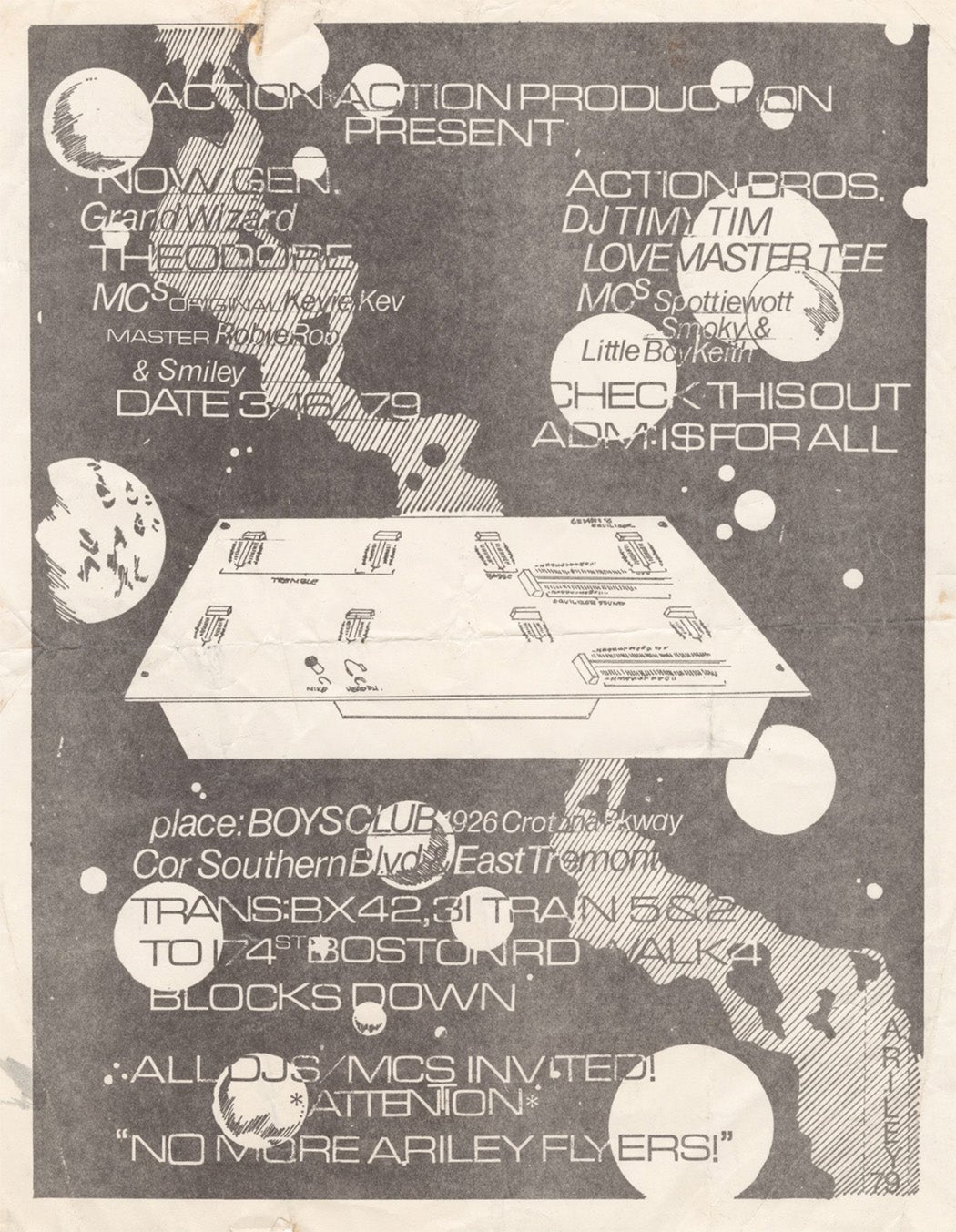 Buddy Esquire himself held on to many of the flyers he produced, the works stored haphazardly in his mother’s basement before finding their way to Cornell’s collection. Perhaps he saved them because he recognized in the moment what he would later tell Lalonde: “they do, in a way, signify a time,” one that would be lost to history without such documents. Or perhaps Buddy Esquire just wanted to prove, as he told OldSchoolHipHop.com, “I am the King of Flyers! Period. I hate to put it like that but facts are the facts.”